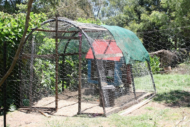 A little further down on the right we passed the burgeoning food forest, then below that, the newly refurbished chook house.